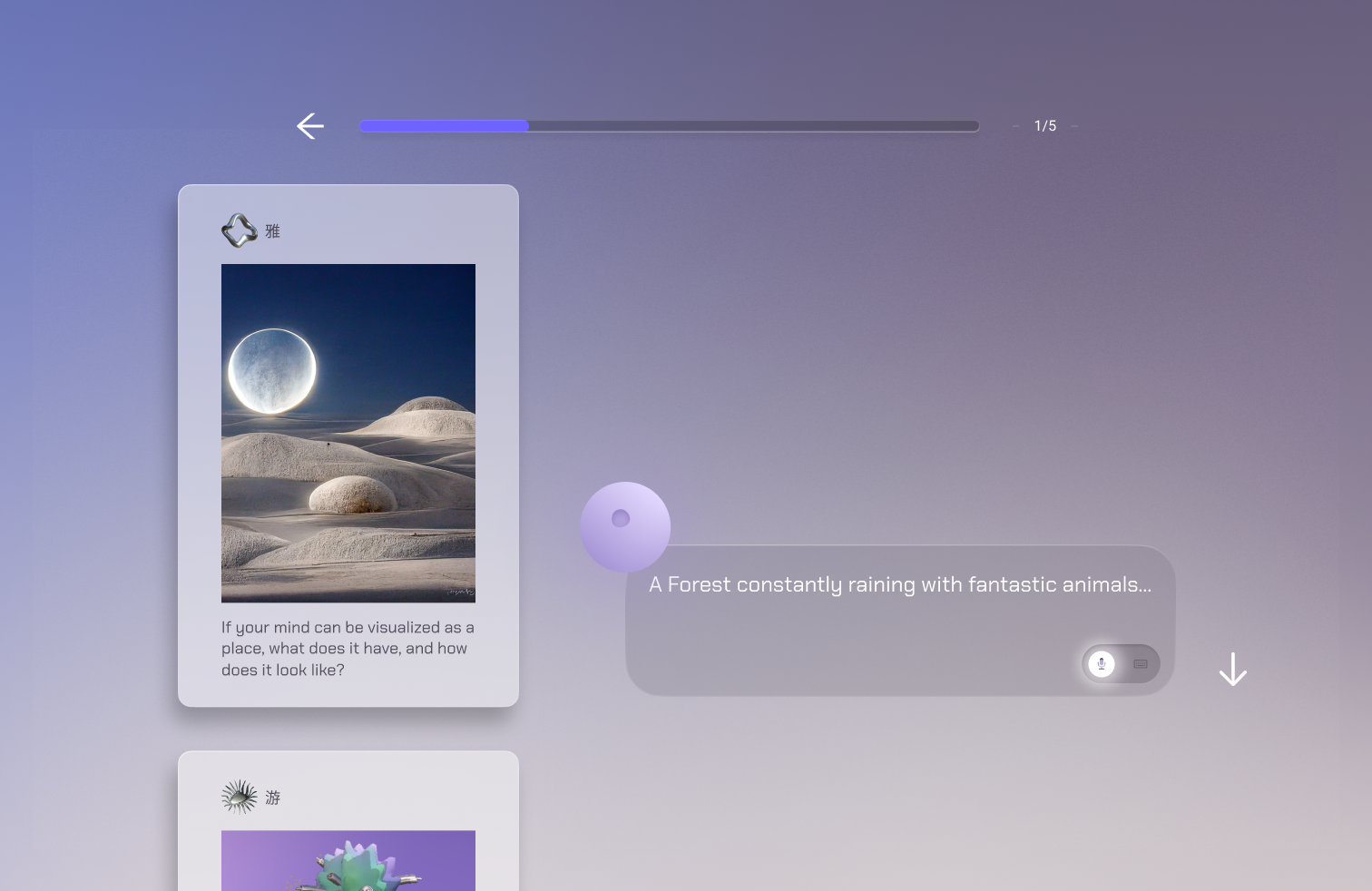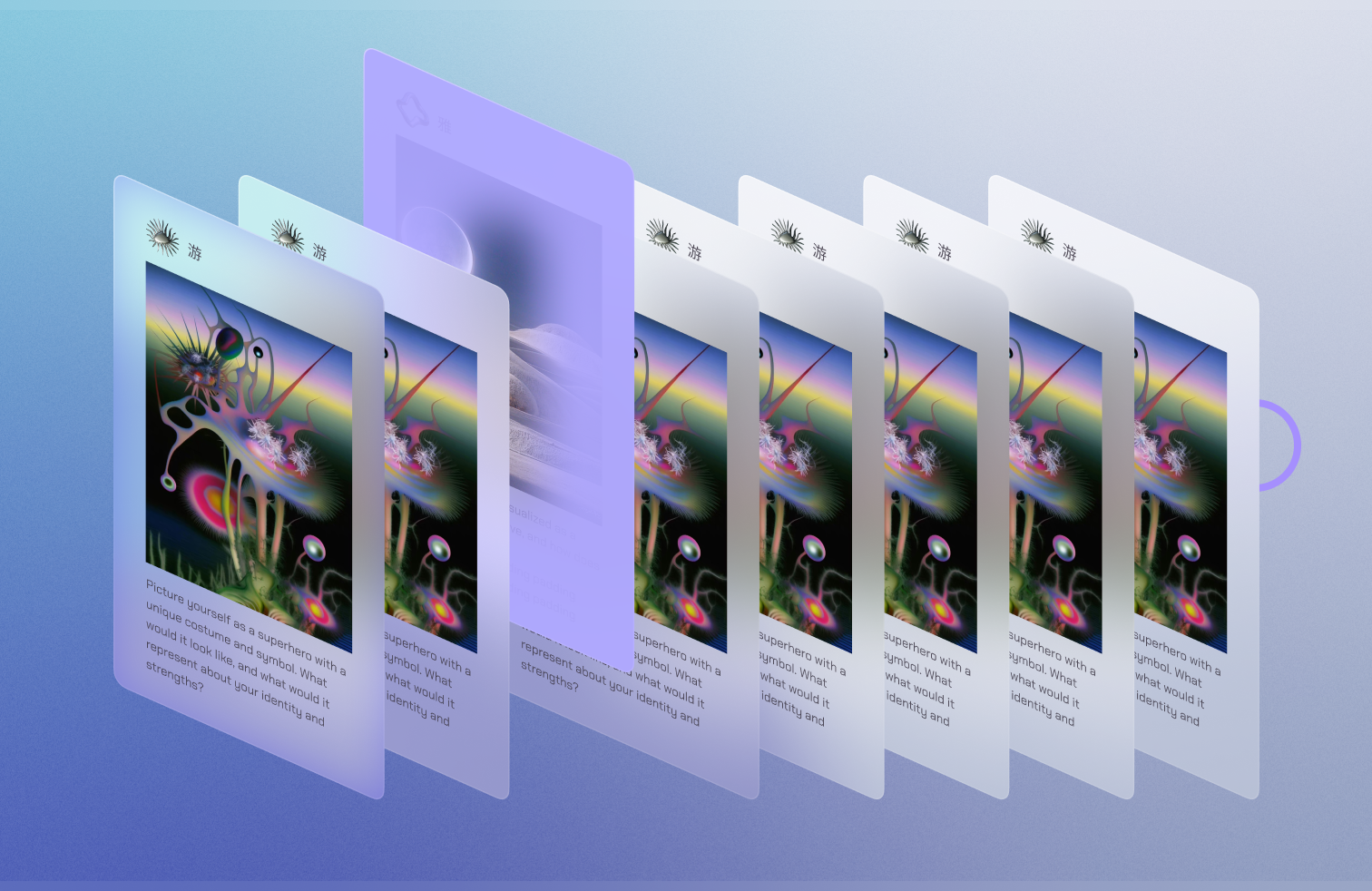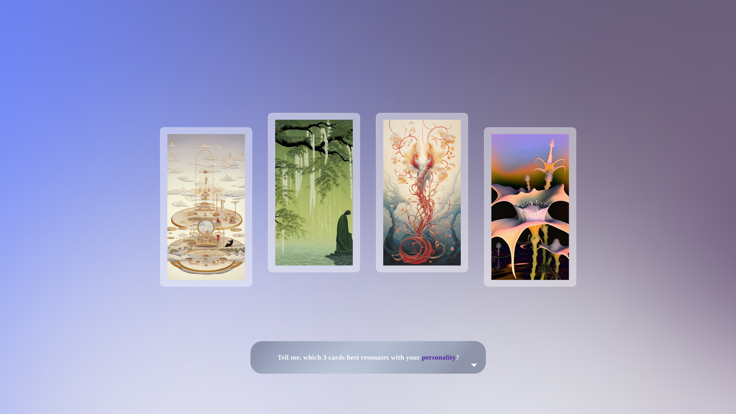 The final onboarding experience is designed to elicit personal reflection through symbolic cards. Users are invited to interpret the imagery, creating a subjective narrative without predefined evaluation. The goal is not to categorize users but to foster introspection, helping them form a deeper connection between their choices and the immersive environment of Marfa.
